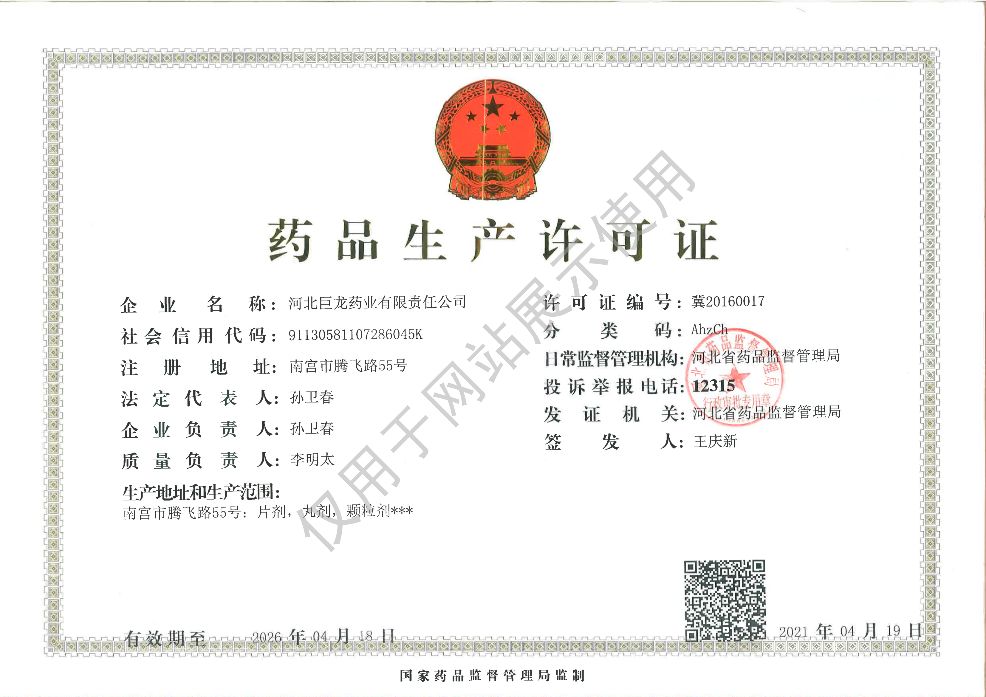 河北巨龍藥業(yè)有限責(zé)任公司,位于南宮市東部工業(yè)聚集區(qū),是一家集生產(chǎn)、銷售、科研為一體的中、西藥品生產(chǎn)企業(yè);是河北省醫(yī)藥行業(yè)協(xié)會(huì)主席團(tuán)企業(yè)、省高新技術(shù)產(chǎn)業(yè)化示范企業(yè)、省誠(chéng)信企業(yè)、省高新技術(shù)產(chǎn)業(yè)協(xié)會(huì)理事、省著名商標(biāo)企業(yè),南宮市的一家藥品生產(chǎn)企業(yè)。其前身南宮市制藥廠,1973年建成并投產(chǎn),1996年依法破產(chǎn),1999年改制重建成股份制企業(yè)。2005年由河北鑫春建筑建材有限責(zé)任公司整體買斷收購,其后陸續(xù)注入資金2000多萬元,開發(fā)并上市了原國(guó)家中藥四類新藥(獨(dú)家品種)小兒清肺顆粒,被認(rèn)定為省高新技術(shù)產(chǎn)業(yè)化示范基地。2015年企業(yè)通過新版藥品GMP認(rèn)證。